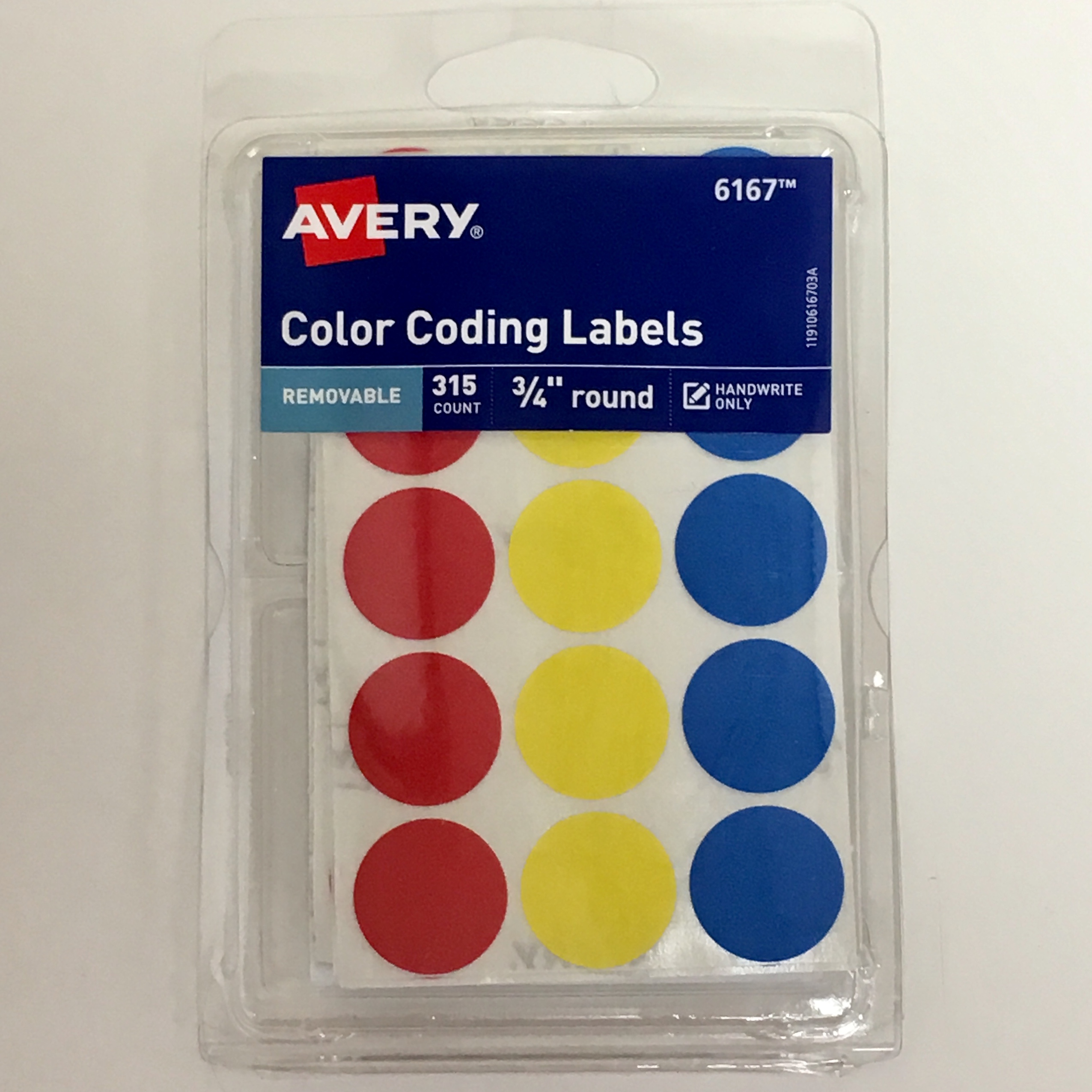 These avery color coding labels use a gentle adhesive so important files and objects will be left in good condition after the dots are removed. Keep boxes or folders well organized with these avery color coding labels. The red yellow and blue round stickers help you mark contents without the need for notes making it simple to sort through your belongings.