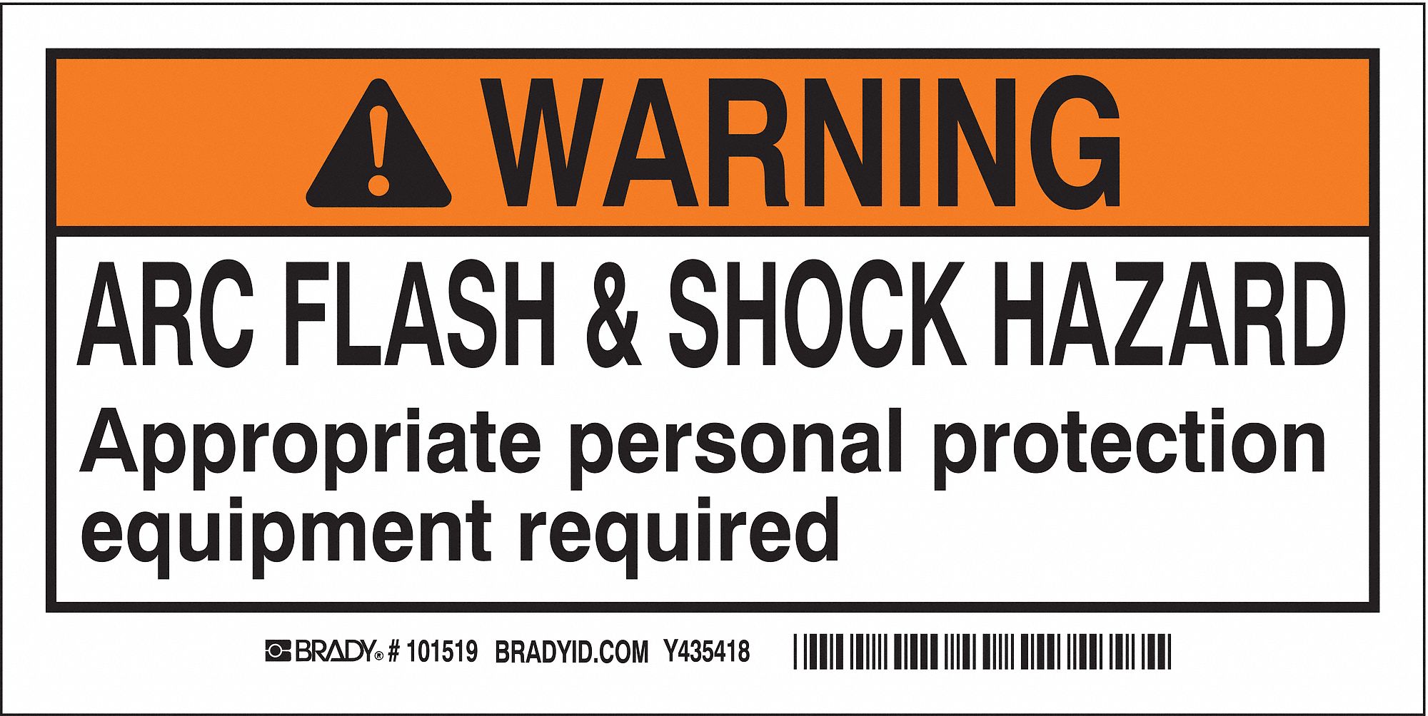 Brady Part 102309 Arc Flash Label Polyester Black Orange On