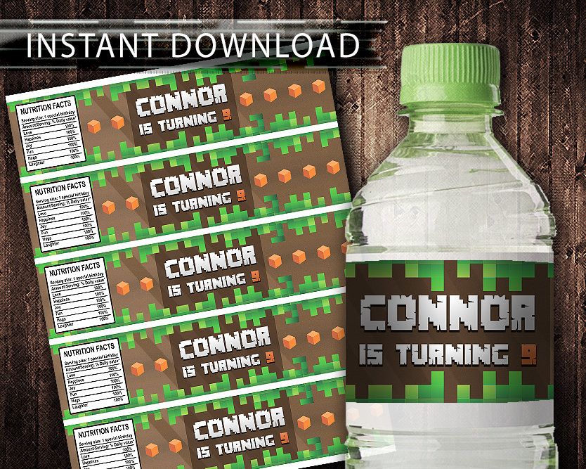 This water bottle holds 16 ounces and is made of durable bpa free. The download has 3 minecraft water bottle labels on one 85 x 11 sheet. Personalized minecraft water bottle labels by bottleyourbrand.