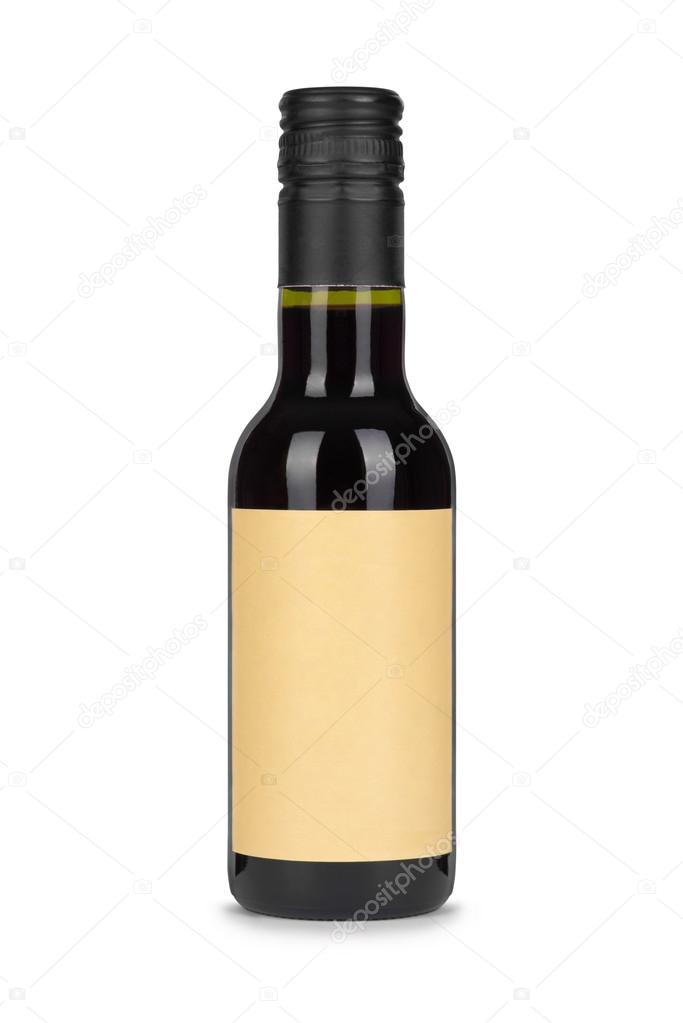 Red Wine Bottle With Paper Blank Label Isolated On White Backgr