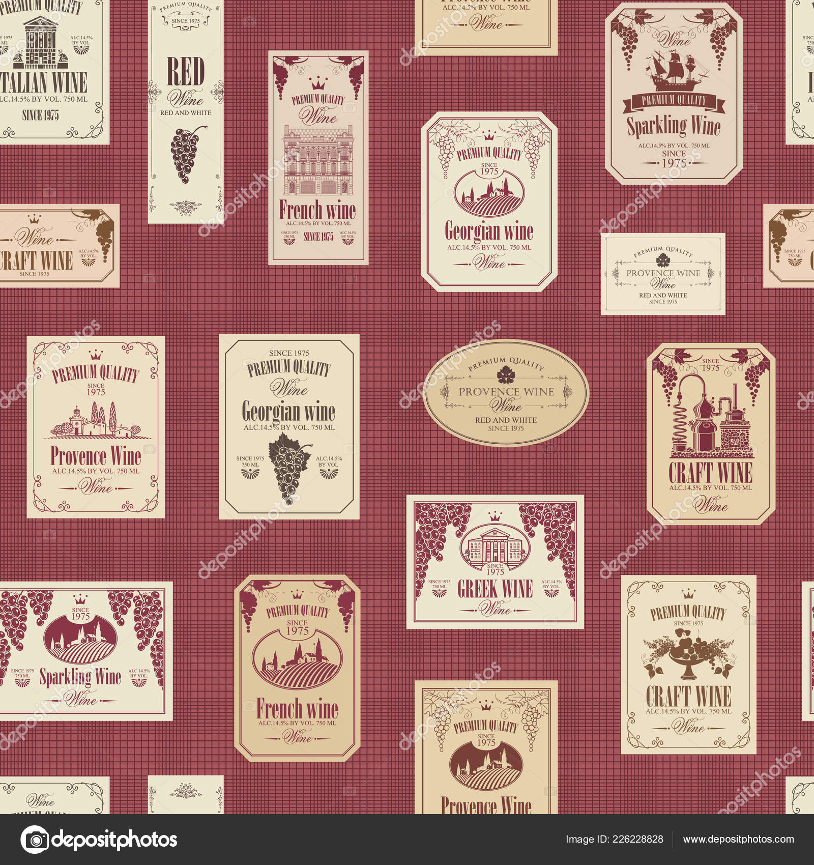 Vector Seamless Pattern With Various Wine Labels Stock Vector Art