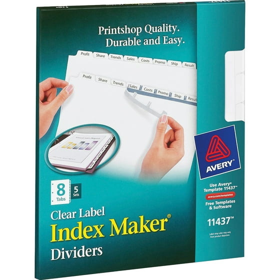 Avery 8 tab plastic binder dividers with pockets insertable multicolor big tabs 3 sets 11907 by avery. Avery index maker print and apply clear label laser and inkjet dividers unpunched 8 tab 5 setsbox 11432. When you are attempting to organize your office or bills the avery 8 tab template will get you organized.