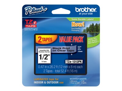 Brother Tze1312pk Label Maker Tapes 0 47 W Black On Clear 2 Pack