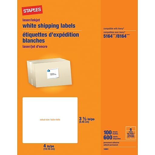 Staples 3 1 3 X 4 Inkjet Laser Shipping Labels White 600 Box