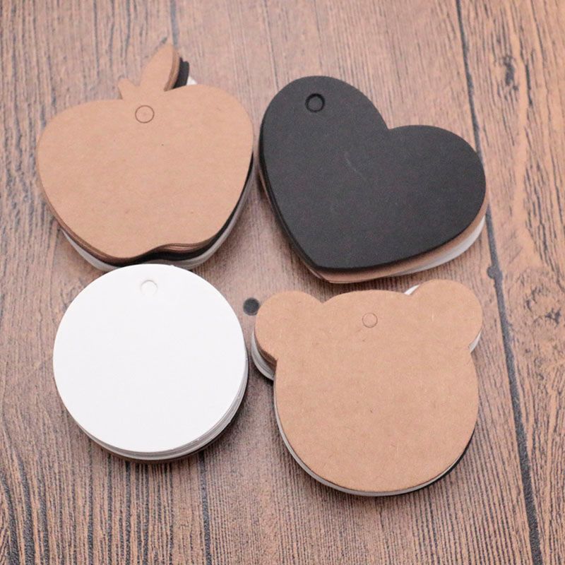 4 Size Diy Bear Apple Love Round Shape Kraft Paper Tags Label For