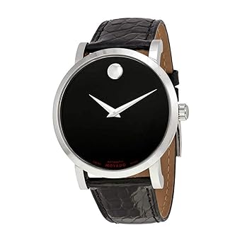 Mens red label automatic watch 42 mm yellow gold pvd finished stainless steel case with exhibition back black museum dial with yellow gold toned dot and hands and red lettering black alligator strap with yellow gold pvd finished stainless steel buckle. The 606158 movado museum red label mens watch is a calendomatic watch which uses automatic swiss movement. Reviews red label write a.