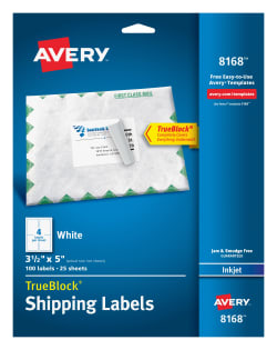 Easily create custom labels cards tags and more. Add to cart avery trueblock inkjet shipping labels 3 12 x 5 white 4sheet 25 sheetspack 8168 1129. Shipping labels with trueblock 936036.
