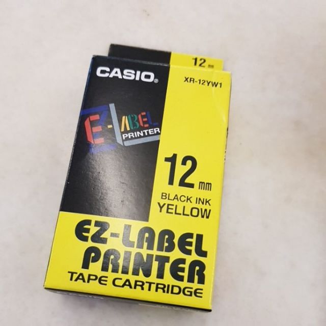 Casio Ez Label Printer Tape Cartridge 12mm Black Ink Yellow Xr 12yw1
