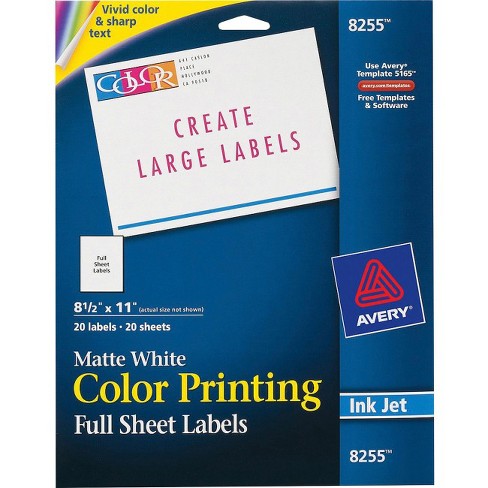 Avery Vibrant Color Printing Shipping Labels 8 1 2 Width X 11 Length Rectangle Inkjet White 1 Sheet 20 Pack