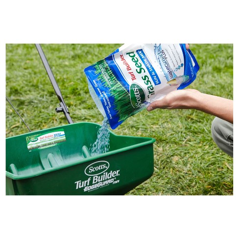 Scotts 18269 turf builder grass seed kentucky bluegrass mix 7 pound. Using scotts turf builder lawn food thickens your grass to crowd out new weeds and strengthens your lawn to help protect it against future problems. Turn your thin grass into a thicker greener lawn.