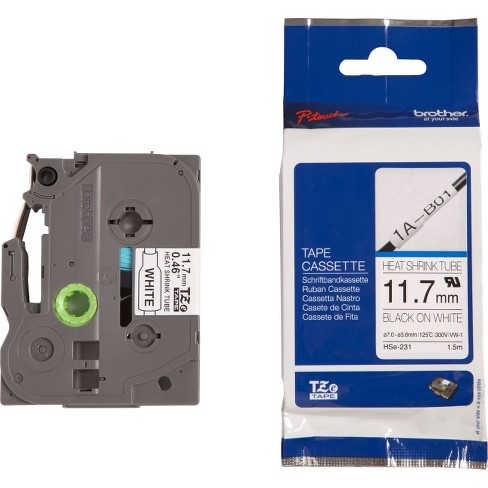 117mm 046in x 15m 49ft size heat shrink tubing black on white recommended for 36 70mm 014 028in outside diameter 21 shrink ratio 300v 125c 257f vw 1 hse tube is a printable heat shrink tubing designed to mark cables fiber and wires. Brother pt e300 shrink tube and label maker printer. Also compatible with high grade and self laminating tapes as well as heat shrink tubes.