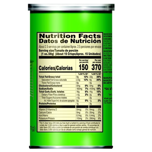 Pringles Grab Go Large Sour Cream Onion Potato Crisps 2 5oz