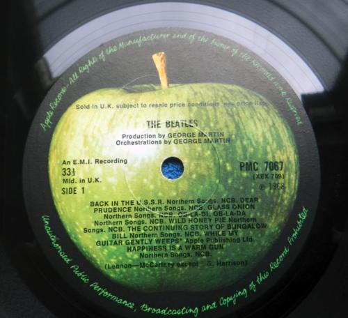 Sold in the uk. The original pressing of the white album uses the original apple records logo the outside of a green apple on the a side of each disk and an apple cut in half on the b side. Buying the beatles the white album.