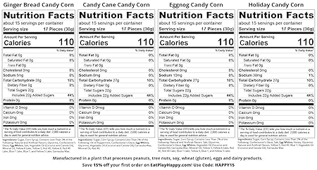 Candy corn nutrition label. The main ingredients in brachs candy corn are sugar corn syrup confectioners glaze salt dextrose gelatin and sesame oil. Regular oreos nutrition facts. Dietfacts is not associated with any food companies manufacturers distributors or restaurants.