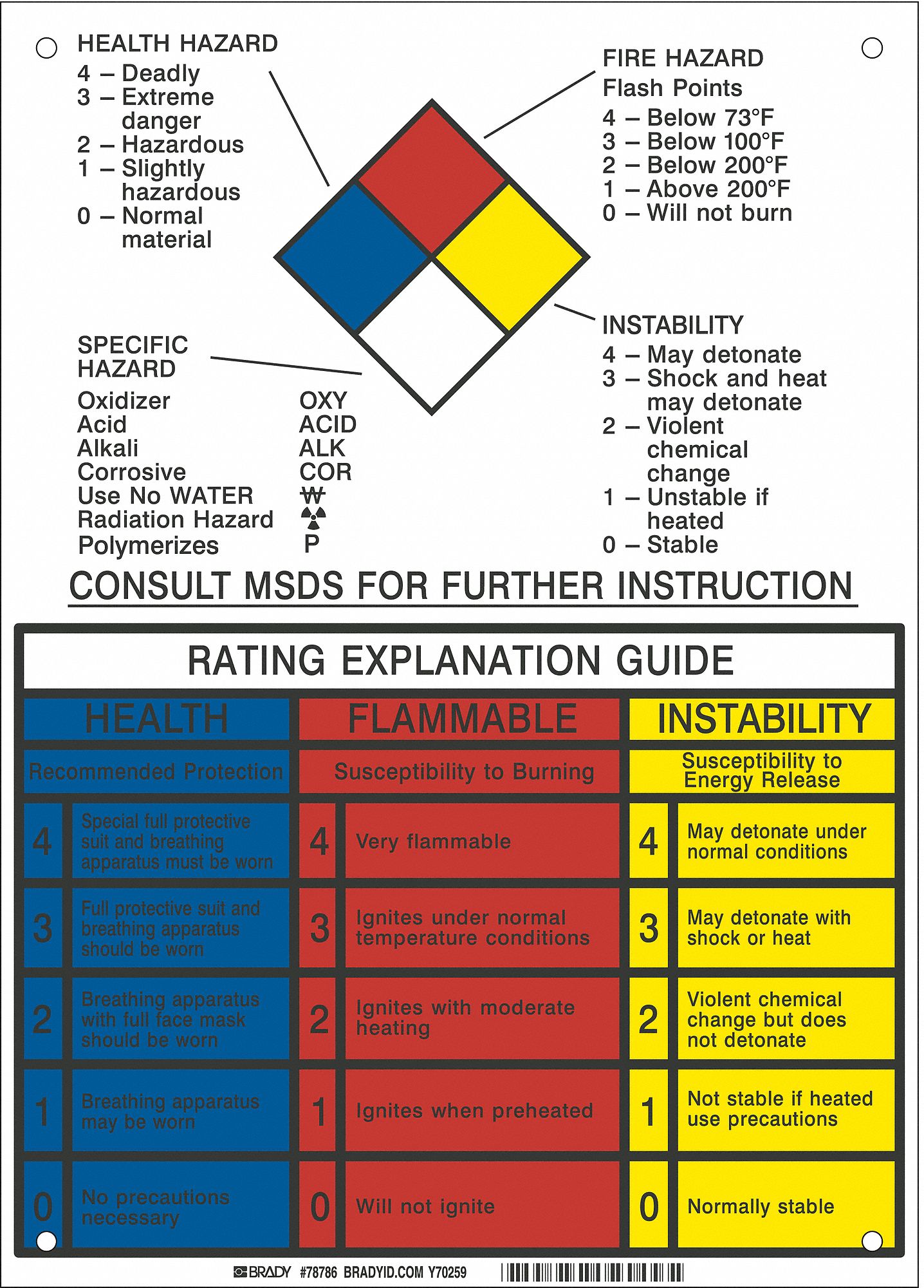 The national fire protection association nfpa in the united states uses a standard called nfpa 704 as a chemical hazard label. Materials capable of ignition under almost all normal temperature conditions. Blue red yellow and white.