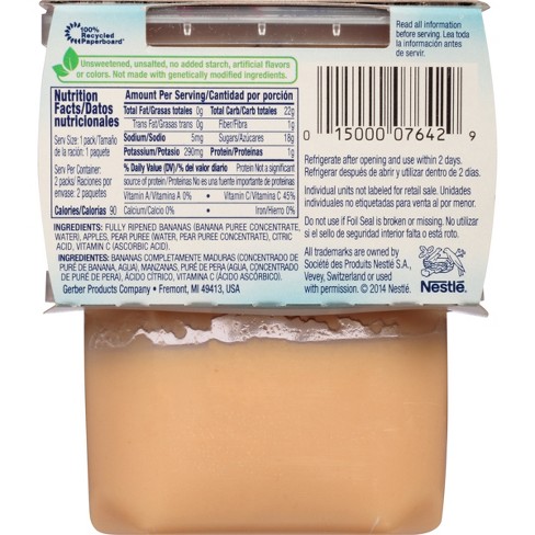 Gerber Banana Baby Food Nutrition Label Ftempo Nutritional