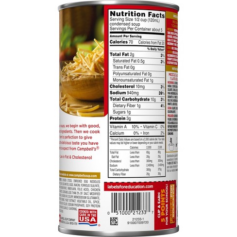 2 Inspirational Campbell S Chicken Noodle Soup Nutrition Label