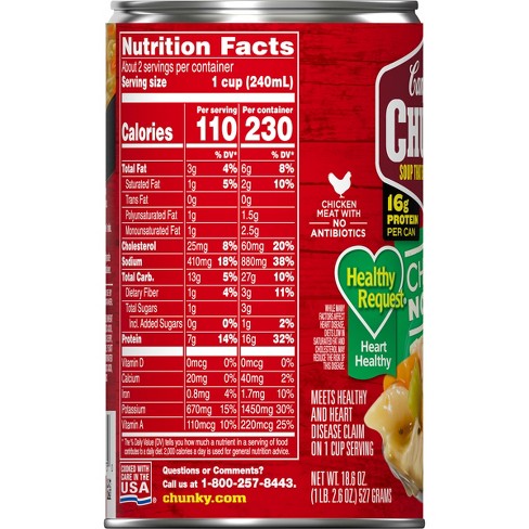 Chicken noodle soup chicken noodle soup is simply a classic from double noodle to the heartiness of chunky weve got you covered with a variety of soothing unmistakable favorites. Nutrition facts are based on our current data. The stock is made from cooking chicken and seasoning in water and then concentrating it through evaporation.
