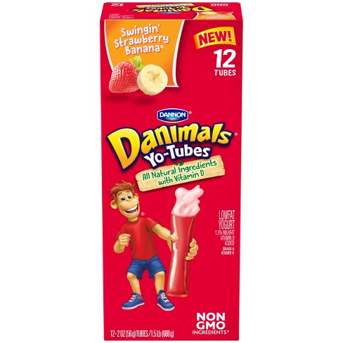 Dannon Danimals Yo Tubes Swinging Strawberry Banana Low Fat Yogurt