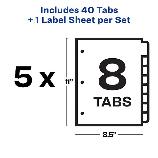 Avery 8 Tab 11 X 8 5 Clear Label Punched Dividers 5 Sets 11437