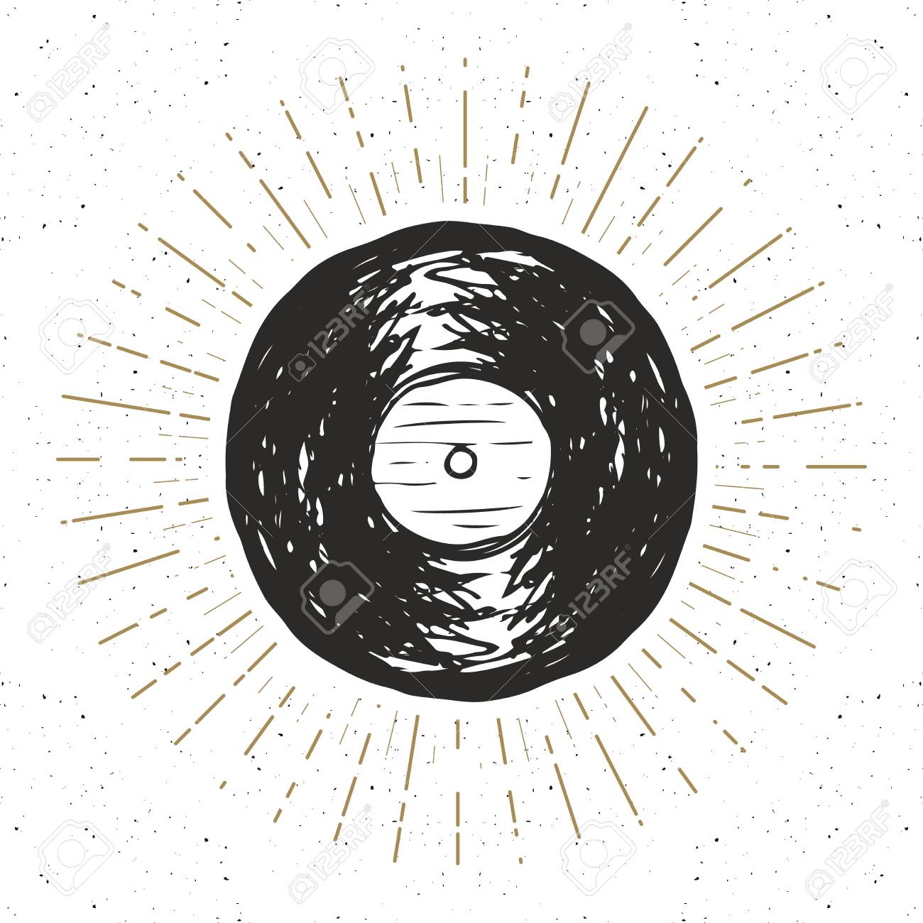 Vinyl Record Vintage Label Hand Drawn Sketch Grunge Textured