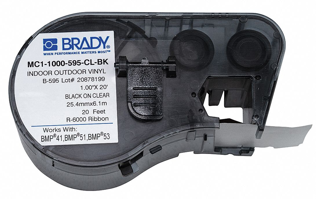 Brady label tape cartridge. L b595 indooroutdoor vinyl cartridge black on white labels 18 24. Is a manufacturer of complete solutions that identify and protect people products and places. Looking for brady indooroutdoor vinyl film label tape cartridge blackwhite 34w x 21 ft.