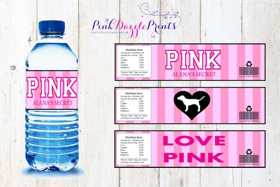 Victoria Secret Pink Themed Water Bottle Labels Etsy