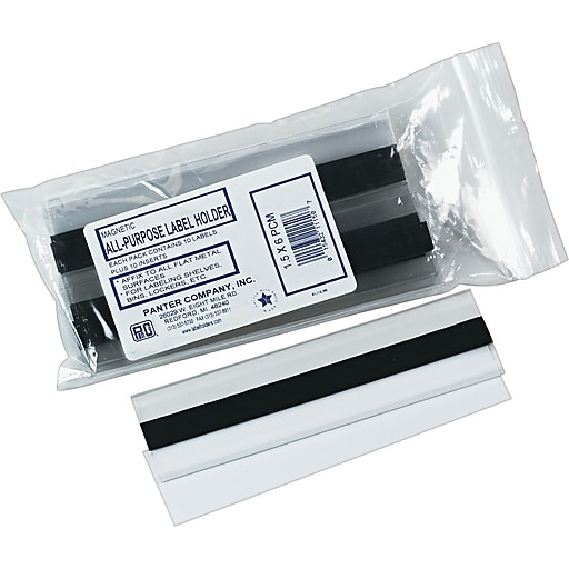 These panter company magnetic label holders come with white label inserts so whatever color you write with stands out and with 10 in a pack the holders let you tackle large labeling tasks easily. 11 locations for fast delivery of label holders. Self adhesive and magnetic label holders are made from sturdy matte finished clear plastic for long lasting durability.
