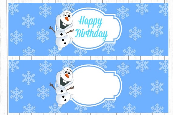 Snowman Olaf Frozen Birthday Party Water Bottle Label Wrappers