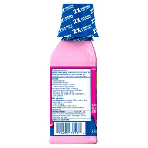 Pepto bismol is used to treat diarrhea and relieve the symptoms of an upset stomach. Precautions while using pepto bismol. Active ingredient in each 30ml dose cup bismuth subsalicylate 525 mg.