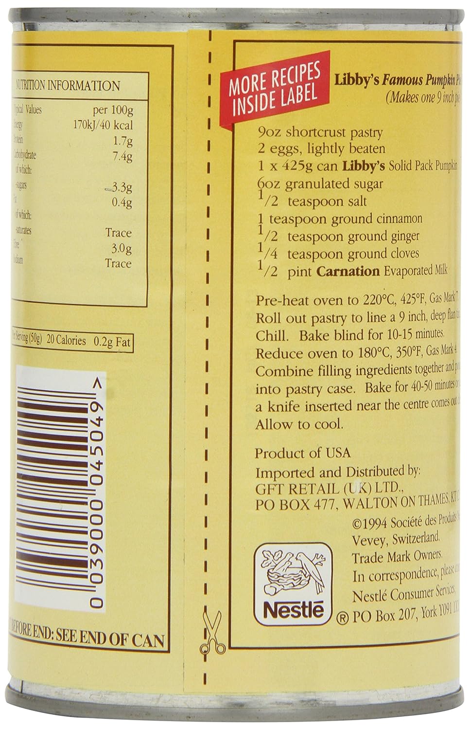 Just check the nutrition facts label on the can so that you know what youre getting. Rated 1 out of 5 by rehs from fine sand in pumpkin i purchased a 3 pack of 29oz libbys canned pumpkin lot 7296537603 exp nov 2019. This bulk canned pumpkinpurãe also adds powerful nutrition to plant baseddishes diners crave.