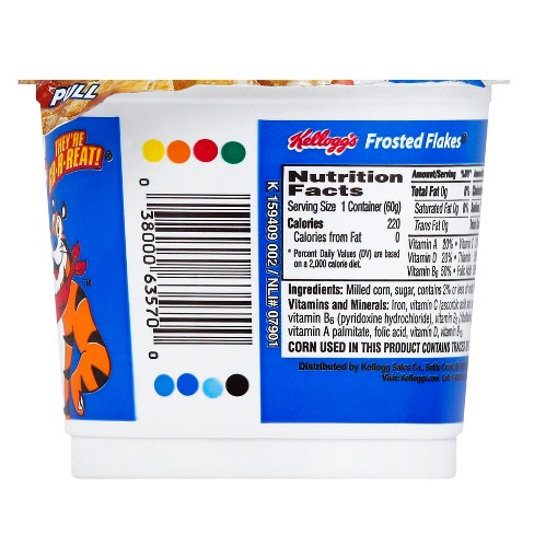 View full nutrition facts panel label. Tony the tiger orange slant top. Get full nutrition facts and other common serving sizes of kellogg frosted flakes including 1 oz and 1 single serving box.